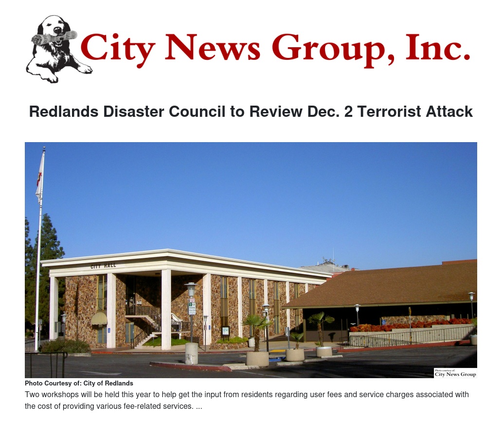 Redlands Disaster Council to Review Dec. 2 Terrorist Attack