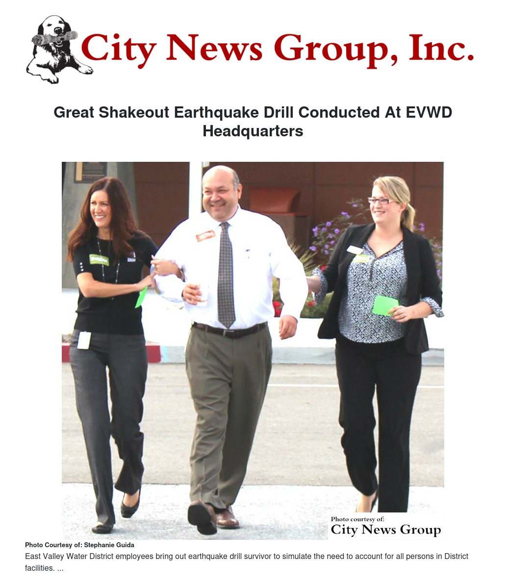 At 10:15 am on Thursday Oct. 15, East Valley Water District participated in the Great ShakeOut Earthquake Drill.
