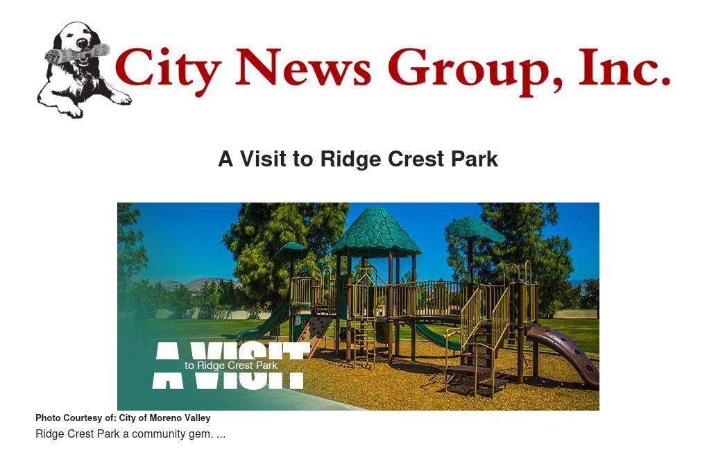 At five acres, Ridge Crest Park is a beautiful neighborhood park in southern Moreno Valley that features massive multi-use athletic fields, barbecues, a fun playground, picnic tables, and more.