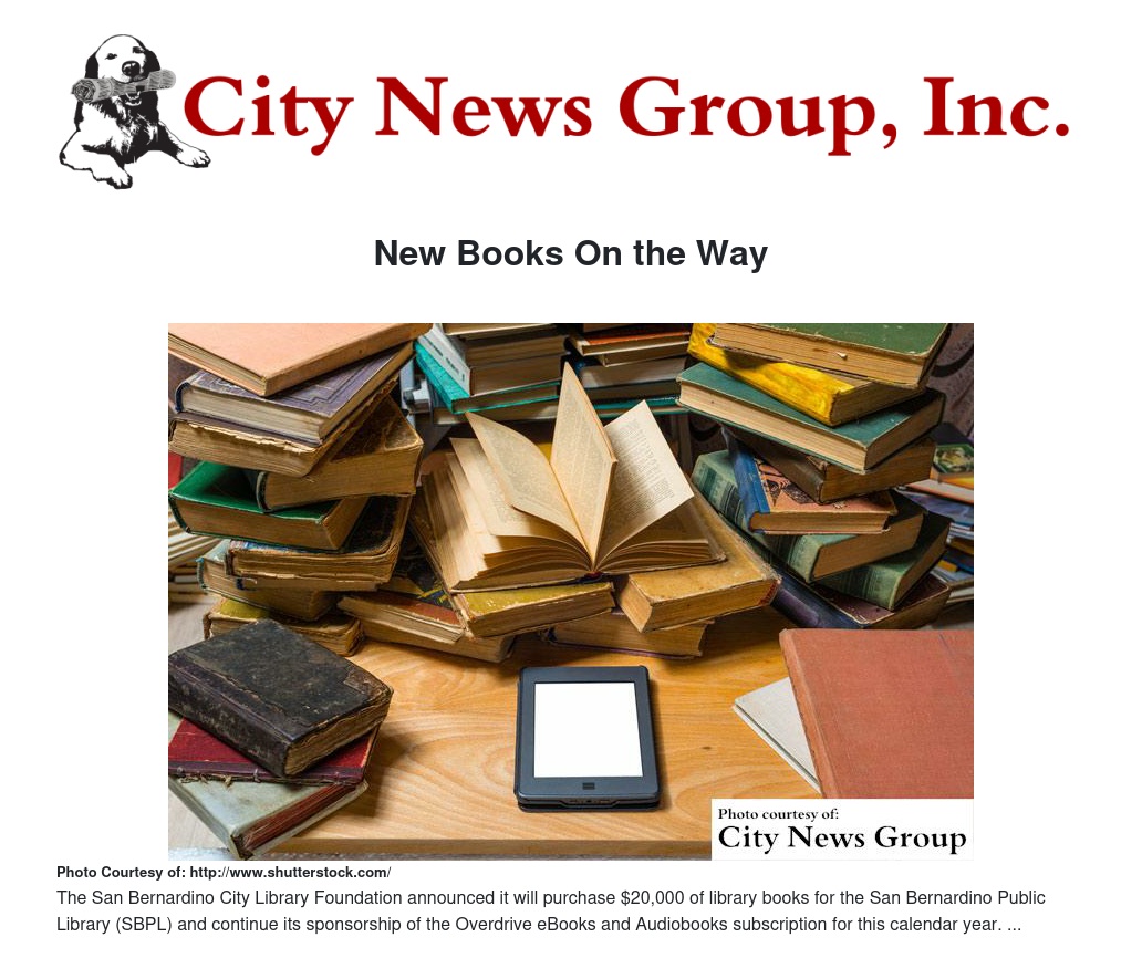 The San Bernardino City Library Foundation announced it will purchase $20,000 of library books for the San Bernardino Public Library (SBPL) and continue its sponsorship of the Overdrive eBooks and Audiobooks subscription for this calendar year.