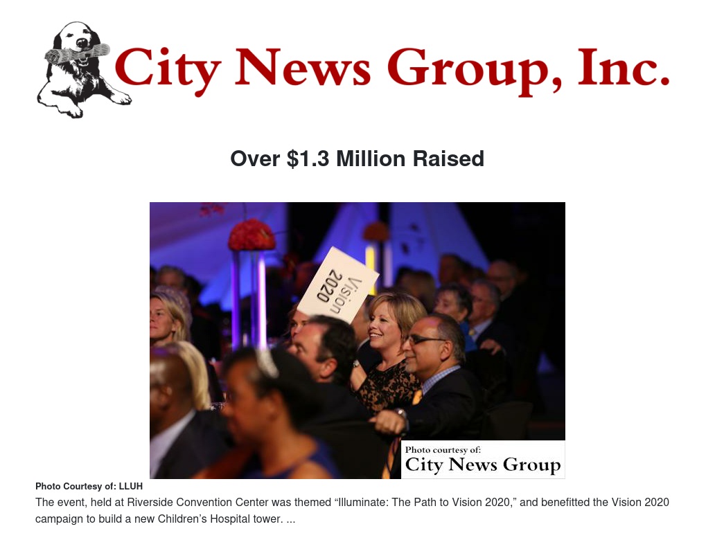 The 23rd annual Loma Linda University Children’s Hospital (LLUCH) Foundation Gala presented by Hard Rock Hotel Palm Springs raised an astounding $1,312,165. Proceeds from the event, held at Riverside Convention Center and themed “Illuminate: The Path to Vision 2020,” will benefit the Vision 2020 campaign to build a new Children’s Hospital tower.