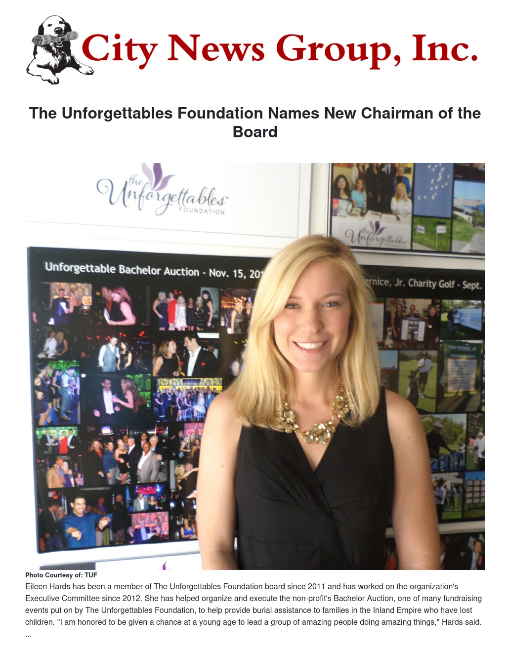“I am excited to welcome someone with such enthusiasm to chair the board,” said The Unforgettables Foundation (TUF) founder Tim Evans. “A young professional like Eileen will bring energy and new ideas to our organization.”
