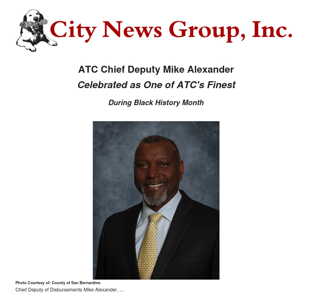 Alexander retired in December after serving San Bernardino County for just over 10 years following a successful career serving in the U.S. Marine Corps, as well as Riverside County. Alexander was the Disbursements Division Chief for over four years and was also ATC’s Central Payroll Manager for over four years.