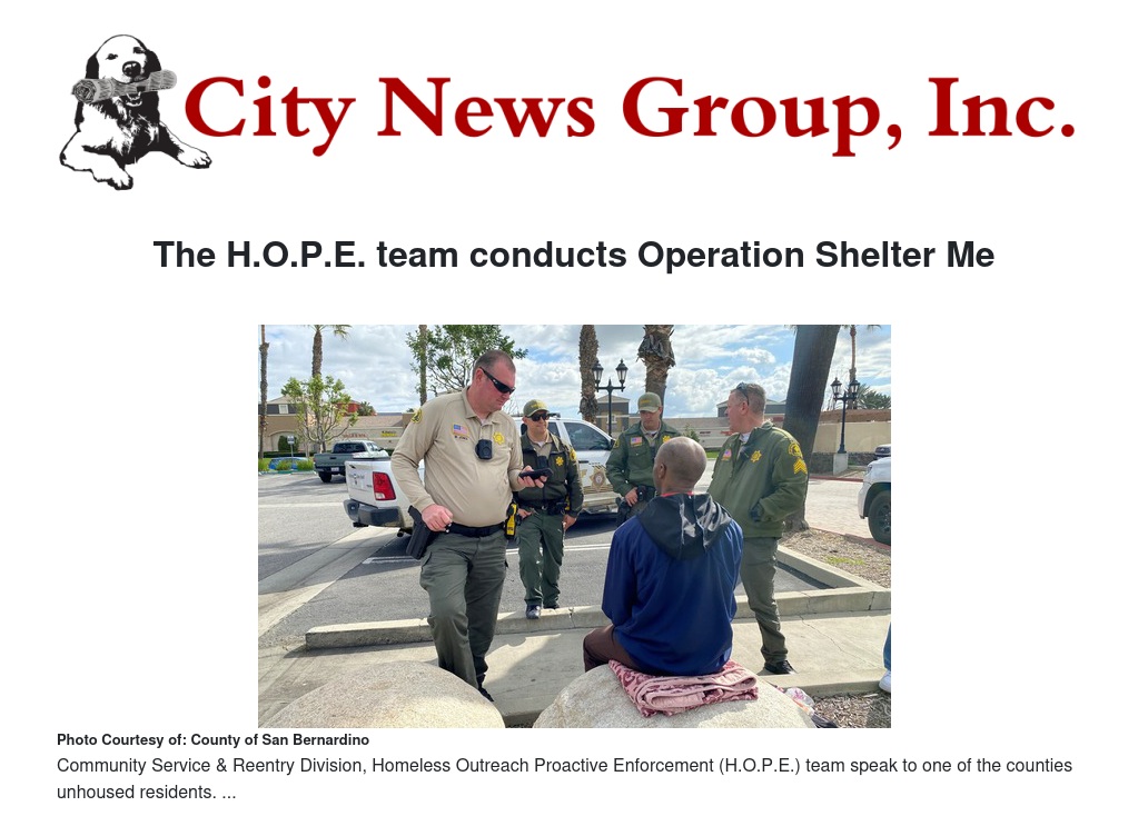 The H.O.P.E. team conducts Operation Shelter Me by County of San Bernardino - City News Group, Inc.
