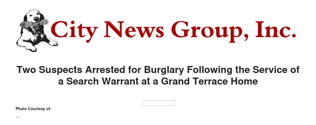 Two Suspects Arrested for Burglary Following the Service of a Search Warrant at a Grand Terrace Home