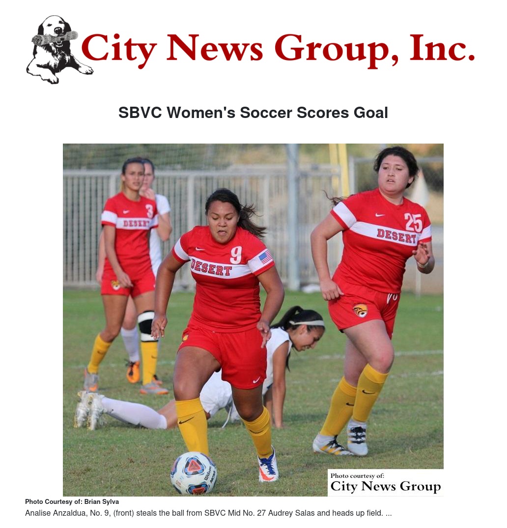 SAN BERNARDINO>> In a recent game, the College of the Desert from Palm Desert, California had a 1-0 lead on the No. 5 team in the Nation until 90 seconds left in regulation, when San Bernardino Valley tied the game on a break-away shot.