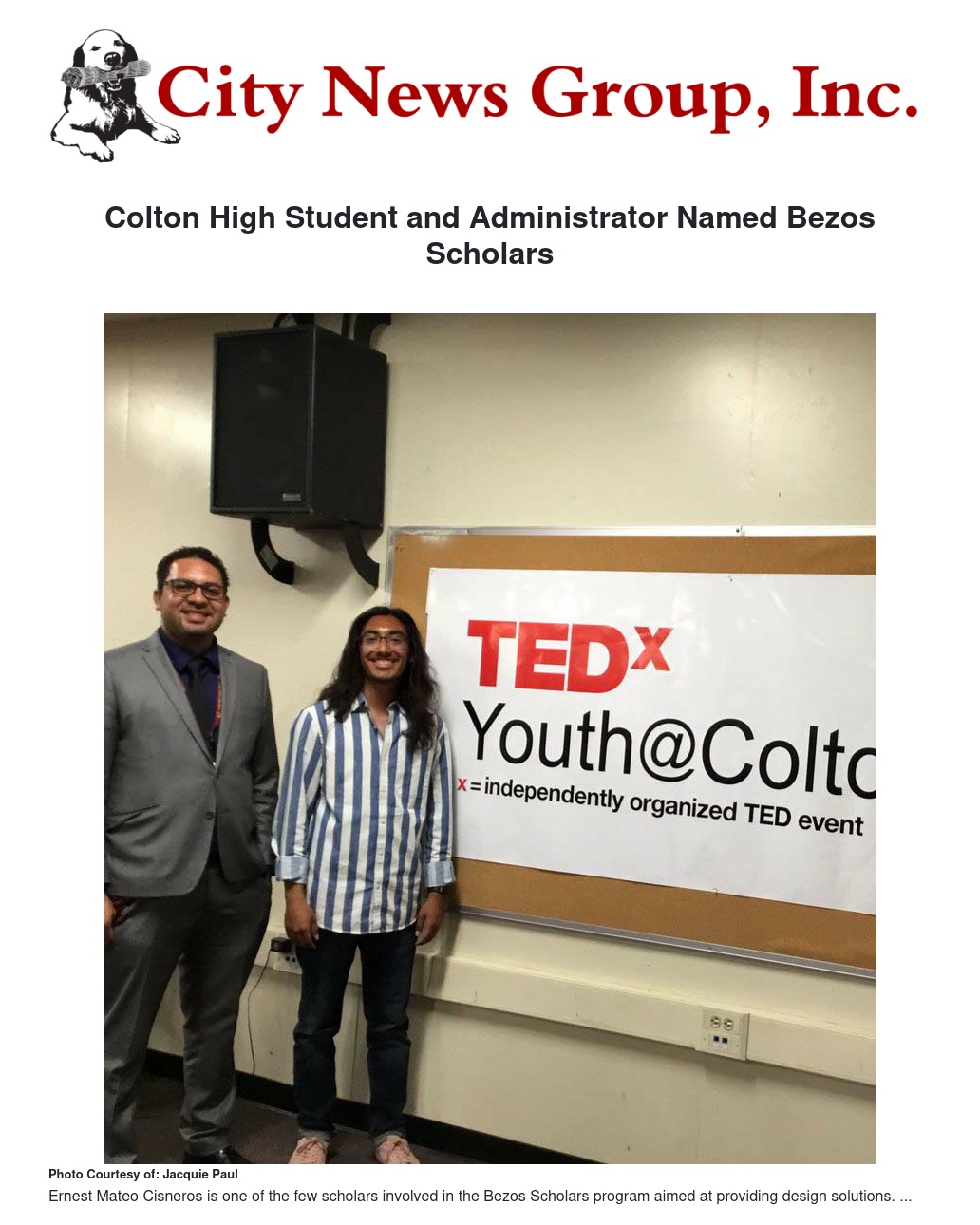 Colton High Student and Administrator Named Bezos Scholars by Jacquie Paul - City News Group, Inc.