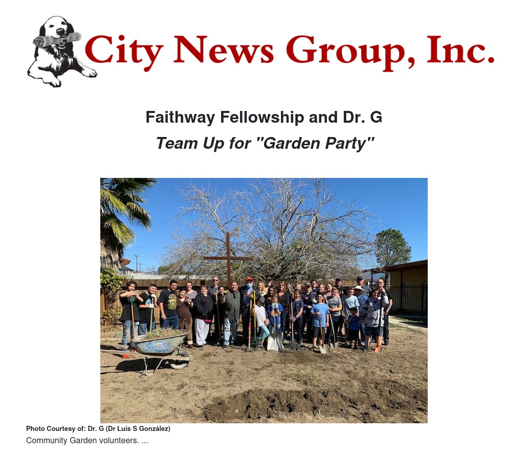 Now going on four months under the leadership of Pastor Ronnie Steen, the Faithway Fellowship Church of the Nazarene is in the heart of Colton. This church organization has seen its community outreach program grow from a simple dinner hour to a comprehensive service program including the following: bible study, dinner, take out, self-help classes for addiction, family movie nights, clothes closet, and now a community garden. Associate Pastor Ray explained, “We follow the leading of our Lord God.”