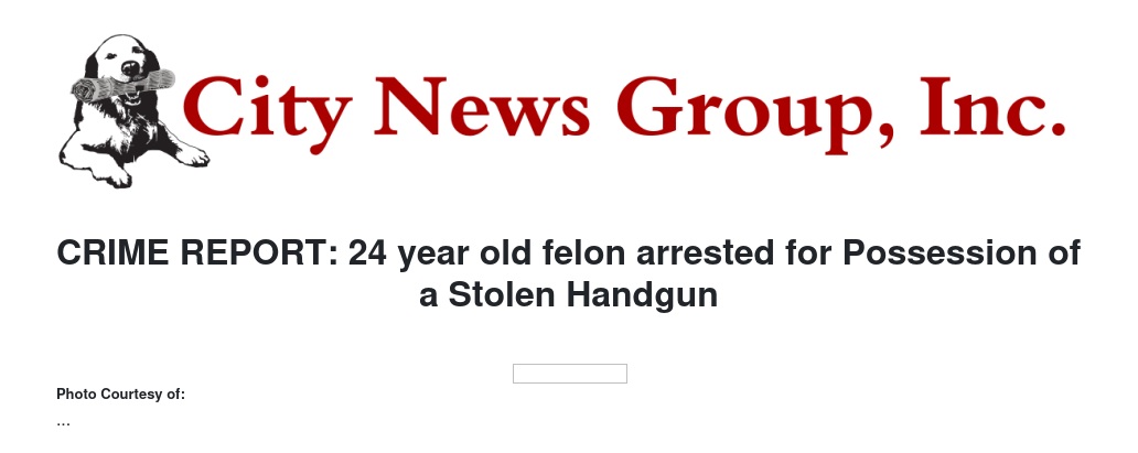 CRIME REPORT: 24 year old felon arrested for Possession of a Stolen Handgun