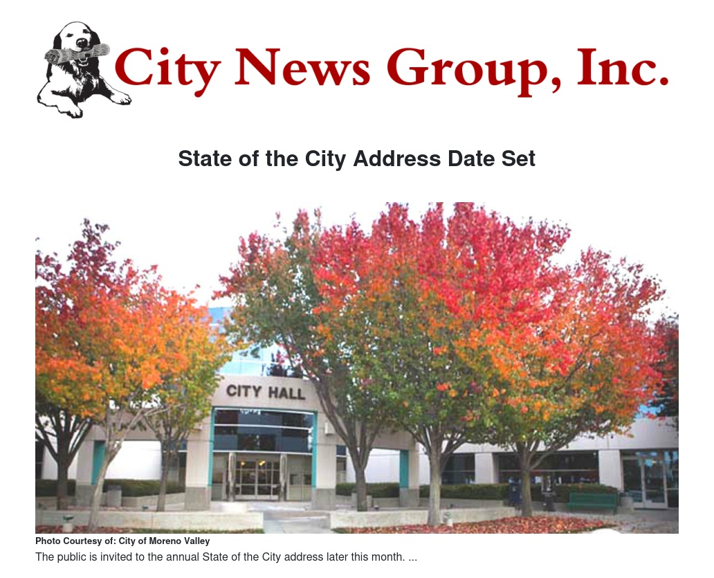The event is hosted jointly by the Moreno Valley Chamber of Commerce and the City of Moreno Valley. According to a written release, Mayor Owings during the program will discuss various city efforts, including the following points: the City’s effort to balance the budget without the use of reserves; efforts to stimulate the city’s economy; challenge the status quo in animal shelter adoptions, community participation, school graduation rates and student performance; and enhance City Hall’s professional leadership while maintaining the continuity of government services to Moreno Valley residents and businesses.
