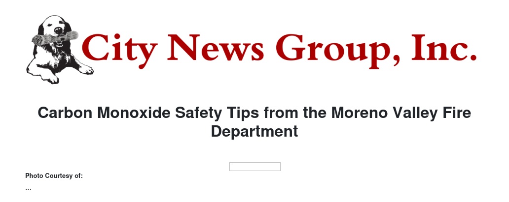 Carbon Monoxide Safety Tips from the Moreno Valley Fire Department