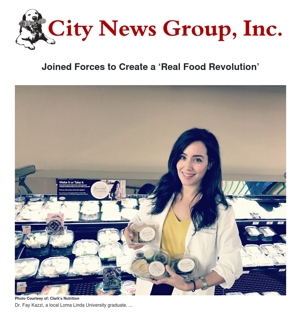 For the past two years, Clark’s Nutrition, the Inland Empire’s leading nutrition store, and Dr. Fay Kazzi, a local Loma Linda University graduate, have been leading a quiet revolution. Like most uprisings, this one is starting small, and is driven by passion for change. Dr. Kazzi and Clark’s have a common vision to share great tasting food that is actually good for you. Marketing Director, Mike Barnett says, “The words ‘nutritious’ and ‘delicious’ are too often not used together to speak of the same food.” Barnett states, “So often there’s a belief that if it tastes amazing, then it must be bad for us, and vice versa. We wanted to change that!”