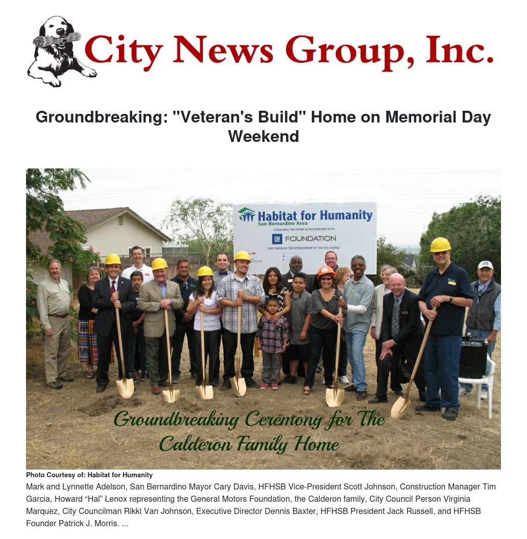 Groundbreaking ceremonies took place just recently for Habitat for Humanity San Bernardino’s “Veteran’s Build” home in partnership with General Motors Foundation.
