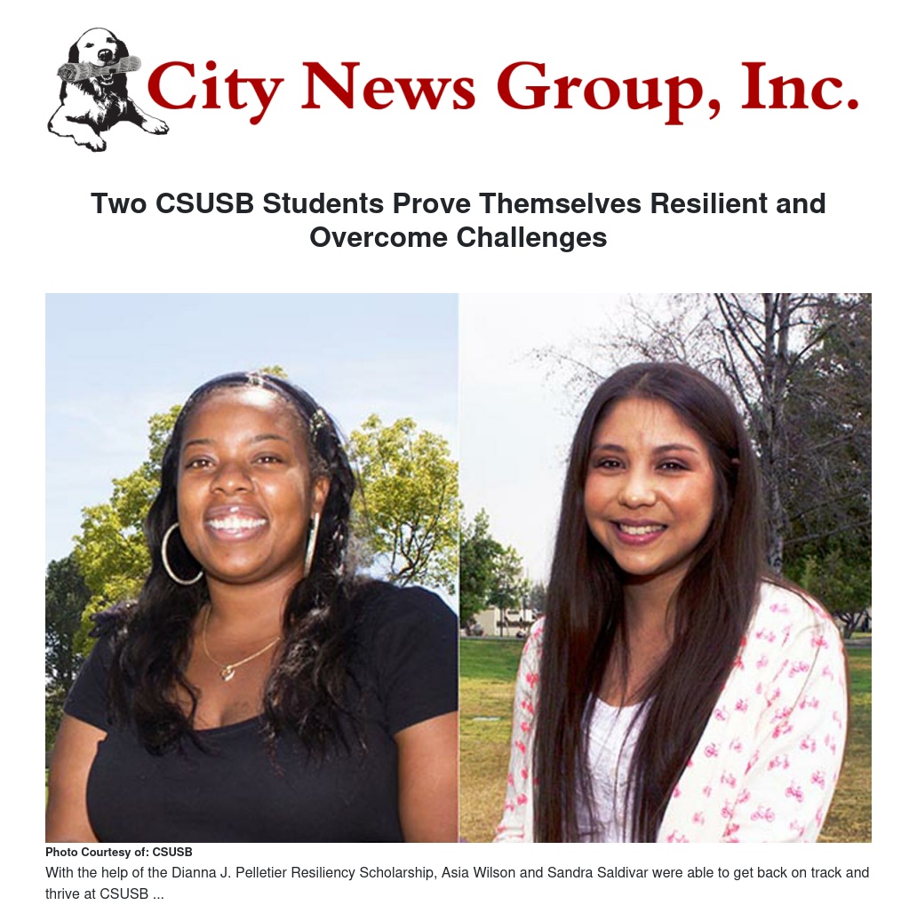 For their efforts during the 2014 winter quarter, the two Cal State San Bernardino students were named recipients of the Dianna J. Pelletier Resiliency Scholarship, which provides a financial incentive to encourage students on academic probation, or were dismissed from the university, to stay in school.