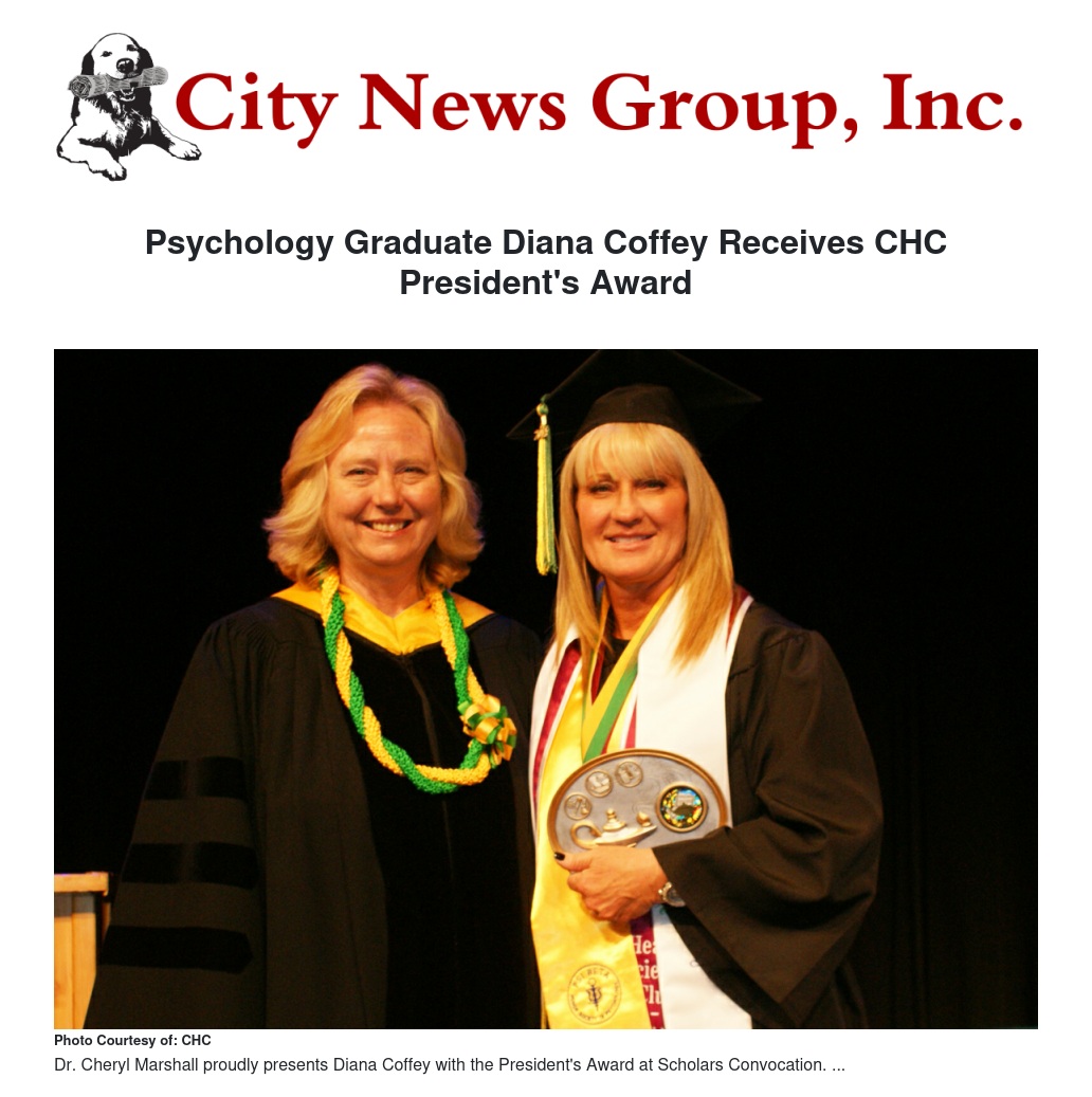 Psychology Graduate Diana Coffey Receives CHC President's Award