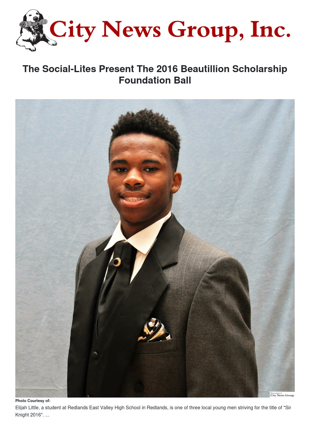 “Young Men of Valor from Vision to Reality” is the theme of the 2015/2016 "Knights of the Beautillion Candidacy." Three young men from the Inland Empire schools are vying for the title of "Sir Knight 2016."
