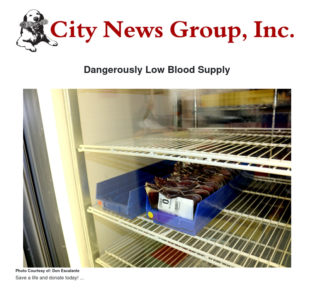 Dangerously Low Blood Supply by Don Escalante - City News Group, Inc.