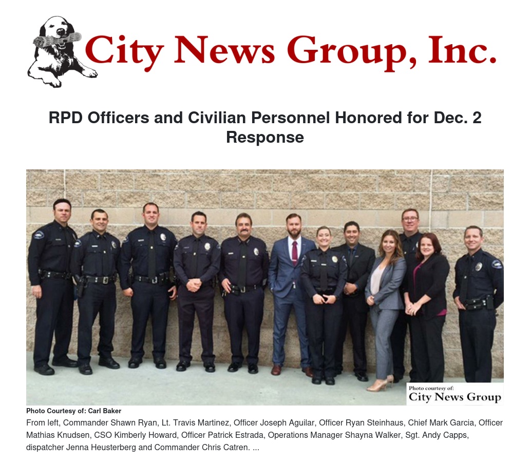 RPD Officers and Civilian Personnel Honored for Dec. 2 Response