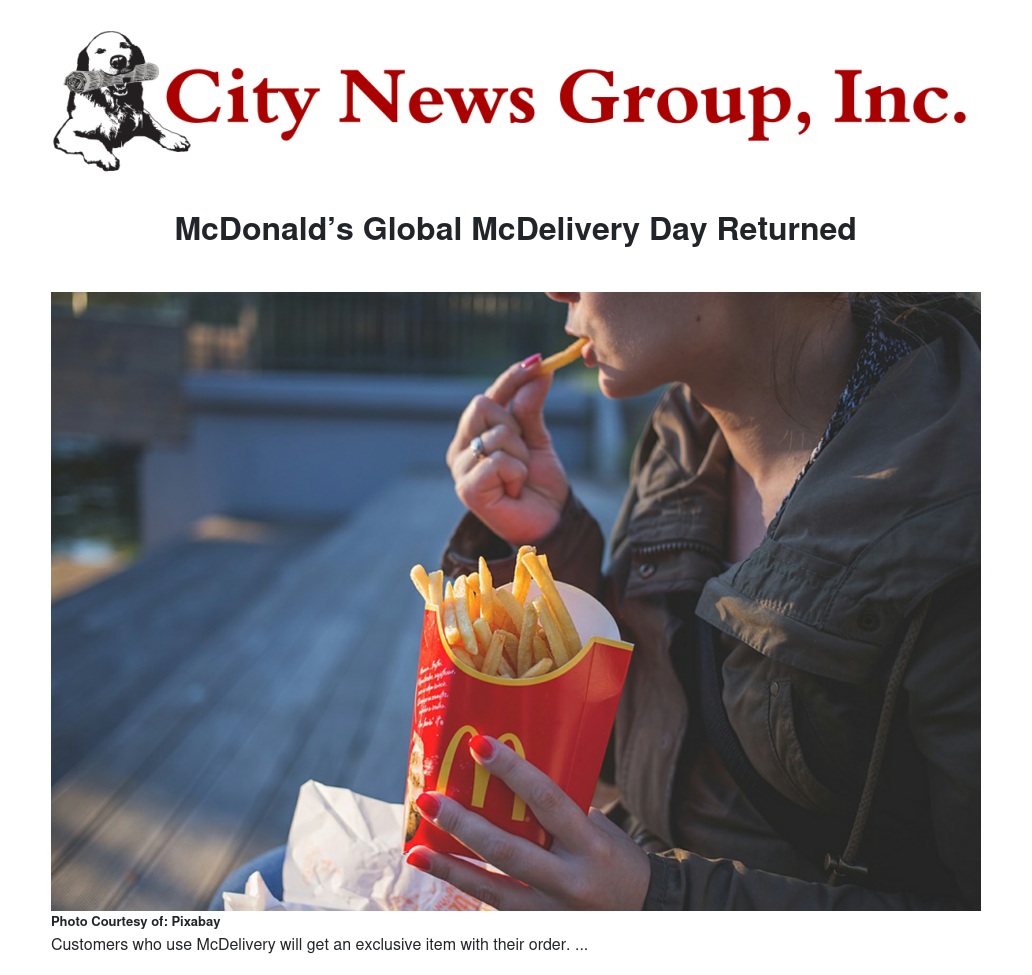 McDonald’s Global McDelivery Day Returned by Haya Kaylani - City News Group, Inc.