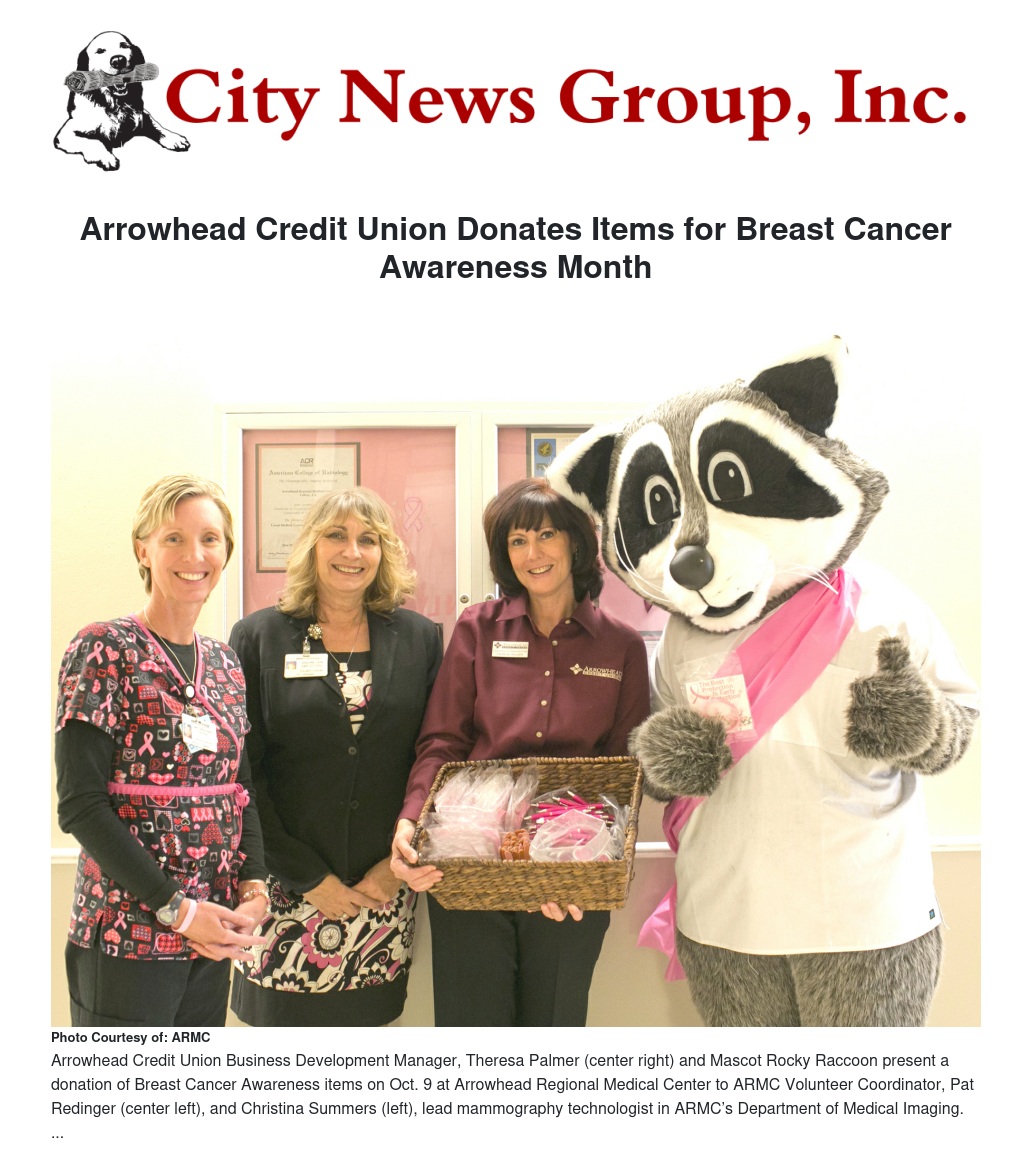 Arrowhead Credit Union Donates Items for Breast Cancer Awareness Month