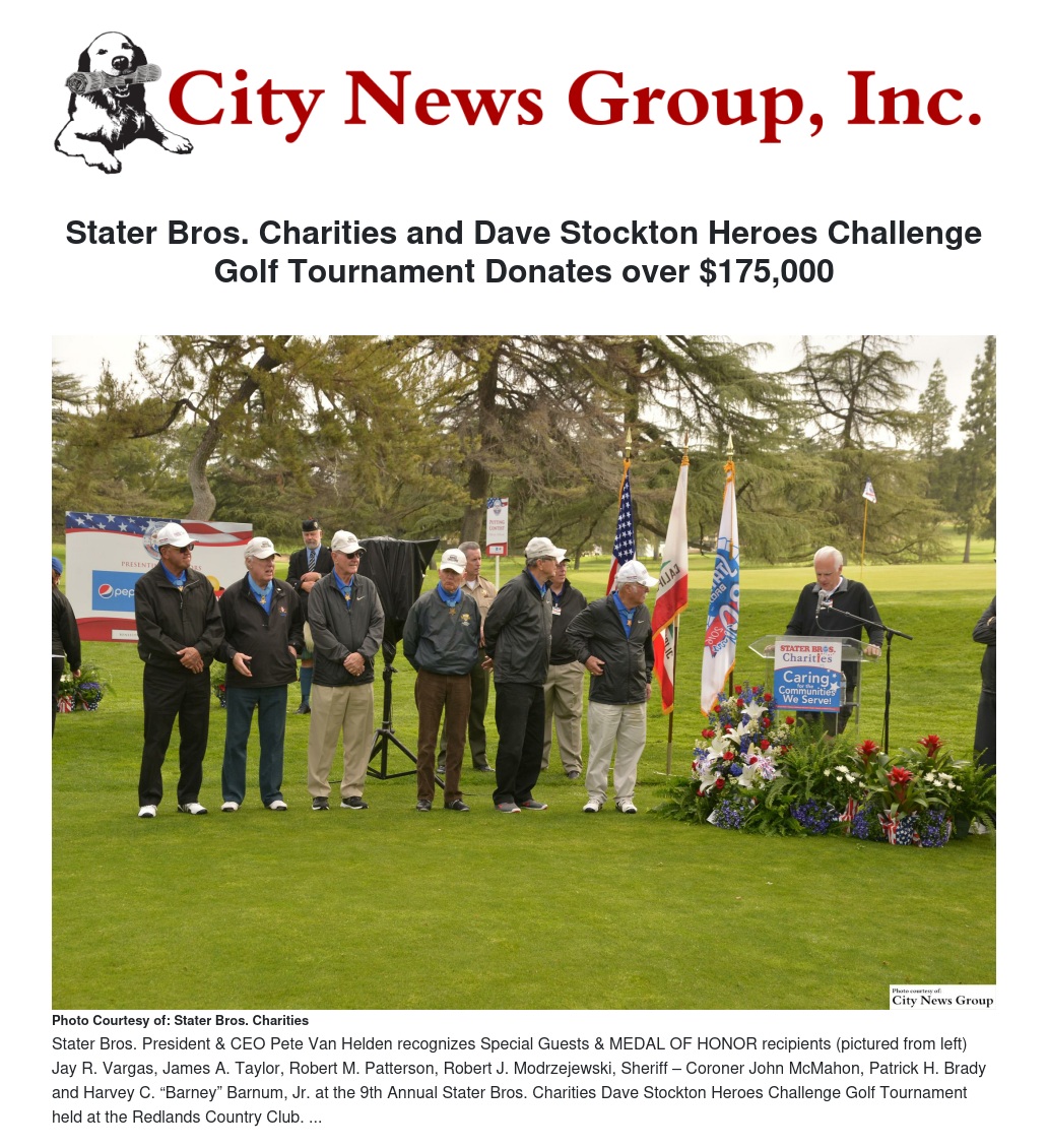 Additionally the tournament honored first responders from the December 2, 2015 tragedy including San Bernardino Police Chief Jarrod Burguan and the San Bernardino Police Department as well as Sheriff - Coroner John McMahon and the San Bernardino County Sheriff’s Department. Stater Bros. Charities donated funds to each department to expand their Community “Outreach Programs”. Stater Bros. Charities also made a major donation to the Congressional Medal of Honor Scholarship Foundation.