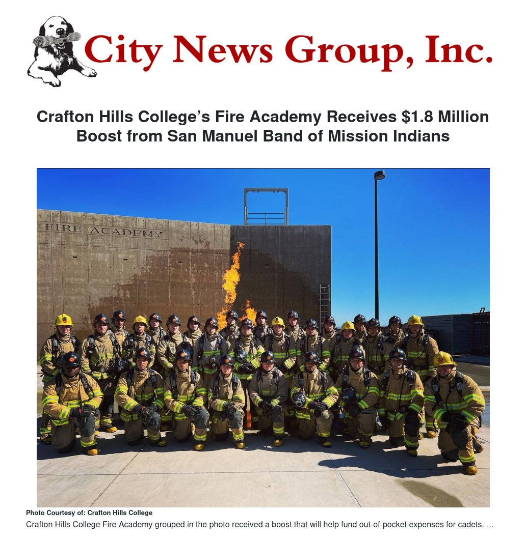 Crafton Hills College’s Fire Academy Receives $1.8 Million Boost from San Manuel Band of Mission Indians by Anna P. Duff - City News Group, Inc.