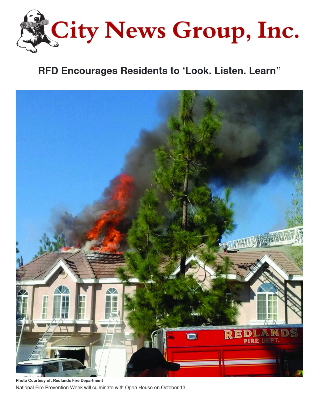 In support of National Fire Prevention Week’s “Look. Listen. Learn.” campaign, the Redlands Fire Department will host its annual Open House from 9 a.m. to 1 p.m. Saturday, Oct. 13, at Fire Station 261 at 525 E. Citrus Ave.