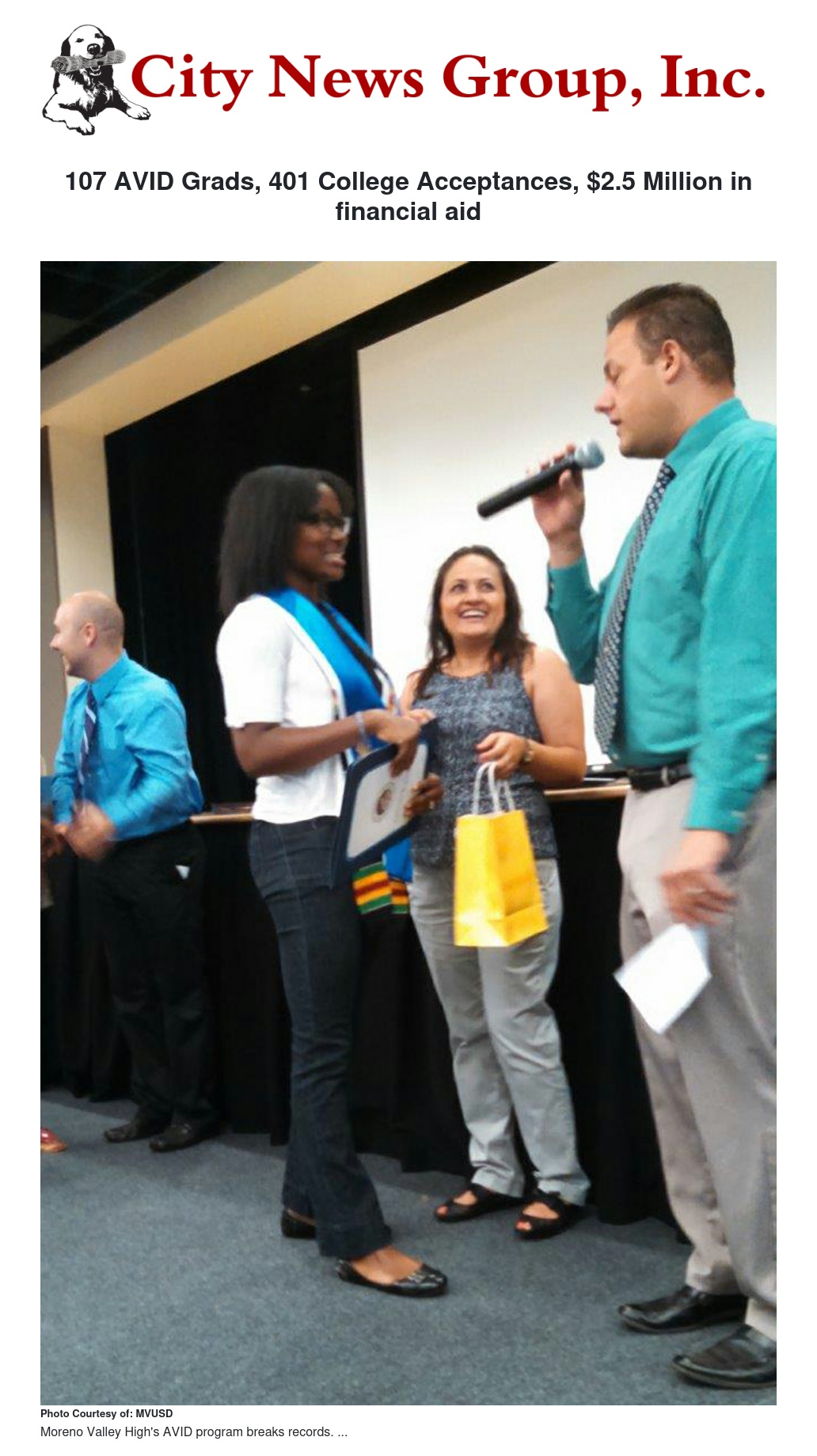 107 AVID Grads, 401 College Acceptances, $2.5 Million in financial aid