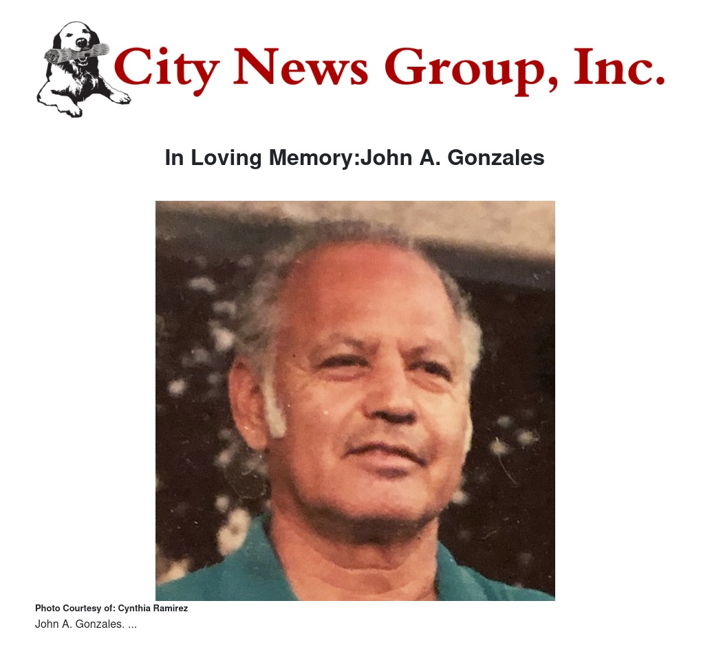 In Loving Memory:John A. Gonzales by Cynthia Ramirez - City News Group, Inc.