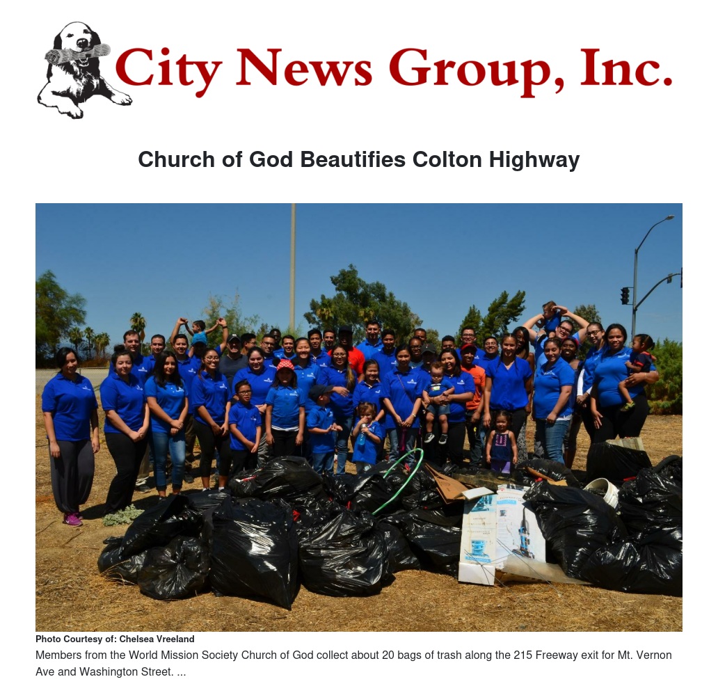 On Sunday, September 10th, 2017 about 40 members of the World Mission Society Church of God, a non-denominational Christian faith group from the local community, met together in Colton to clean up a local highway. Members picked up trash and beautified the sides of Washington St., right off the 215 Freeway, near the church. Participants happily gathered on their day off to give back to the community with heartfelt efforts and positive attitudes. Taking pride in their community, members of the church were excited to once again clean up the streets for the families of Colton.