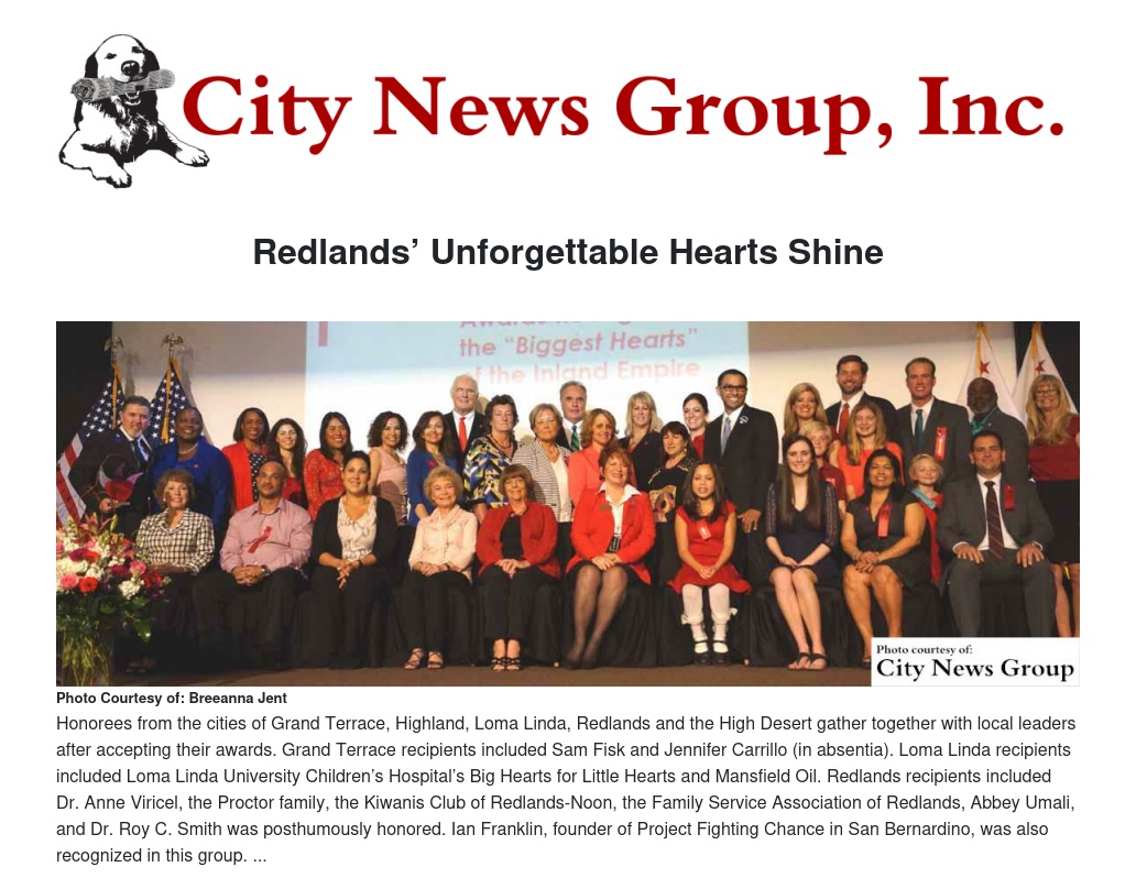 Dr. Anne Viricel, the Proctor family, the Kiwanis Club of Redlands-Noon, the Family Service Association of Redlands, Abbey Umali and Dr. Roy C. Smith were this year’s Redlands awardees, honored alongside others from the cities of Highland, Grand Terrace, Loma Linda and the High Desert.