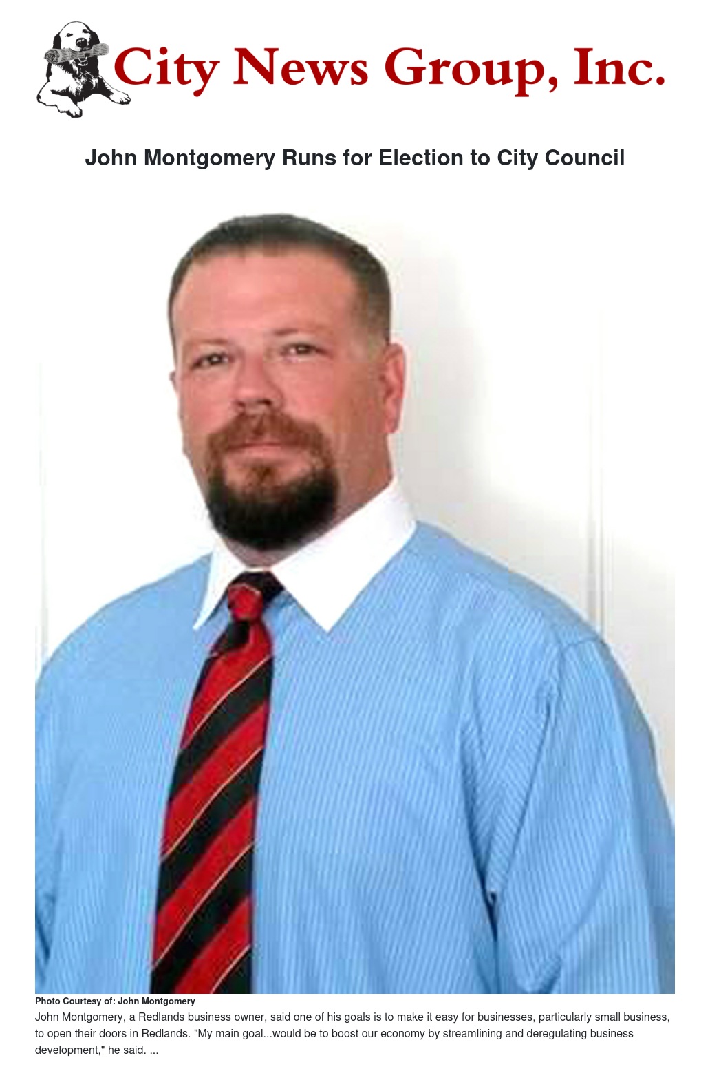 Business owner John Montgomery is running this November to represent Redlands as a member of the City Council.