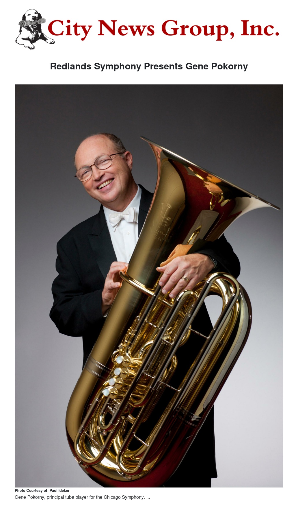 Redlands Symphony Presents Gene Pokorny by Paul Ideker - City News Group, Inc.