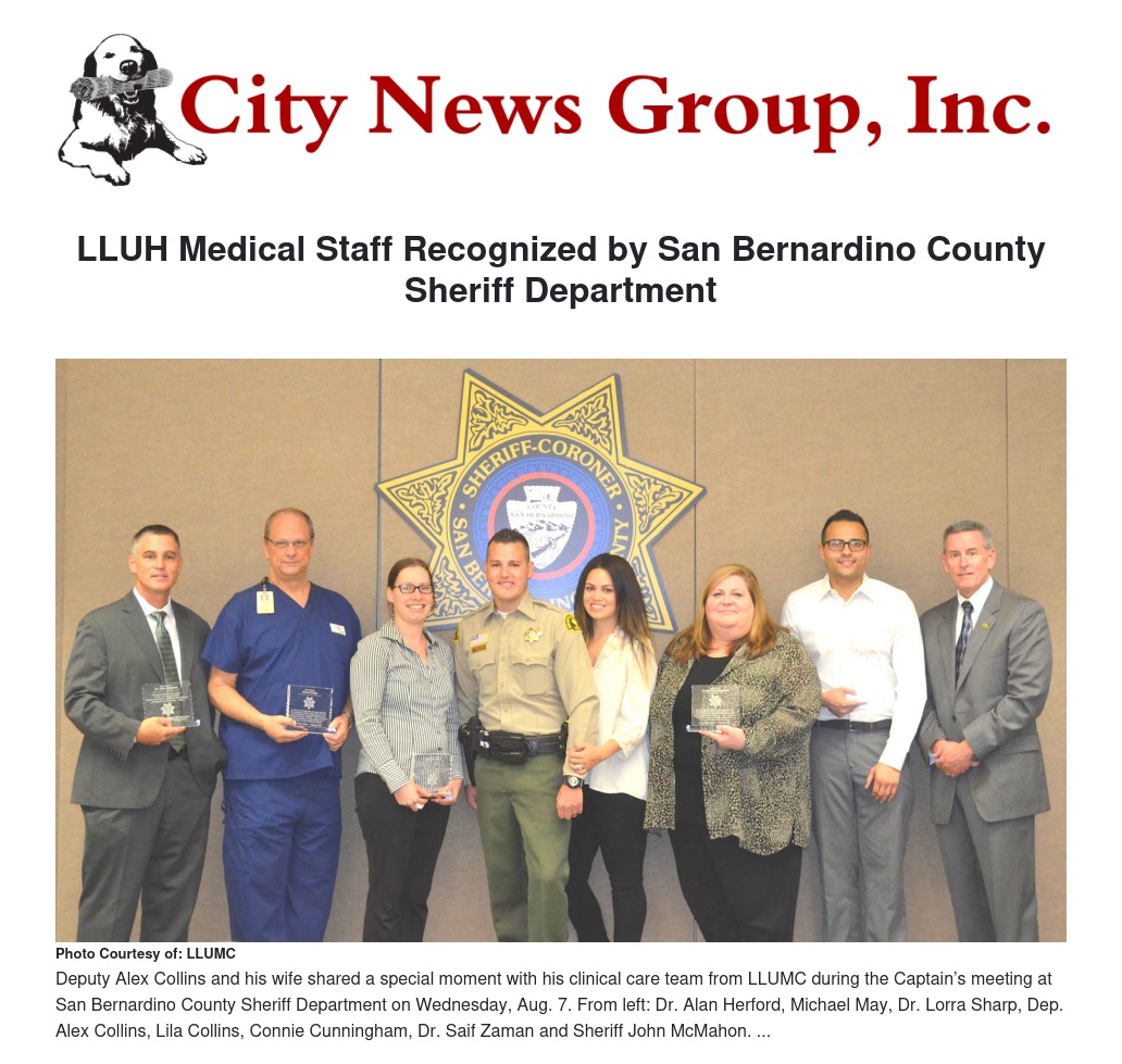 LLUH Medical Staff Recognized by San Bernardino County Sheriff Department