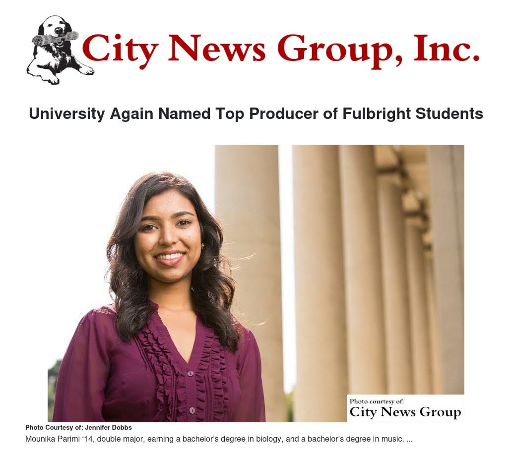 University Again Named Top Producer of Fulbright Students