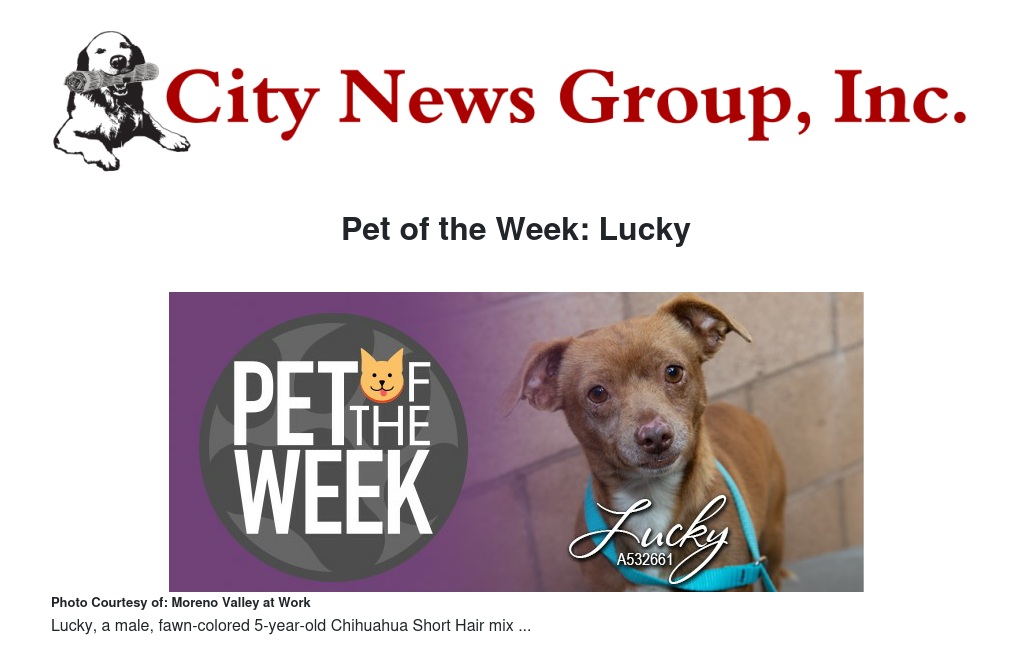 Pet of the Week: Lucky by Steve Redman - City News Group, Inc.