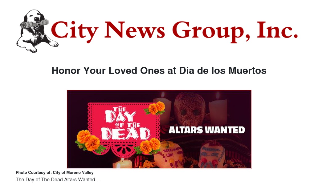To apply, visit moval.org/dayofthedead. Altar requests will be taken on a first-come, first-served basis. The deadline to apply is October 25, 2024. Visit moval.org/dayofthedead, email us at specialevents@moval.org, or call us at 951.413.3280 for more info! |