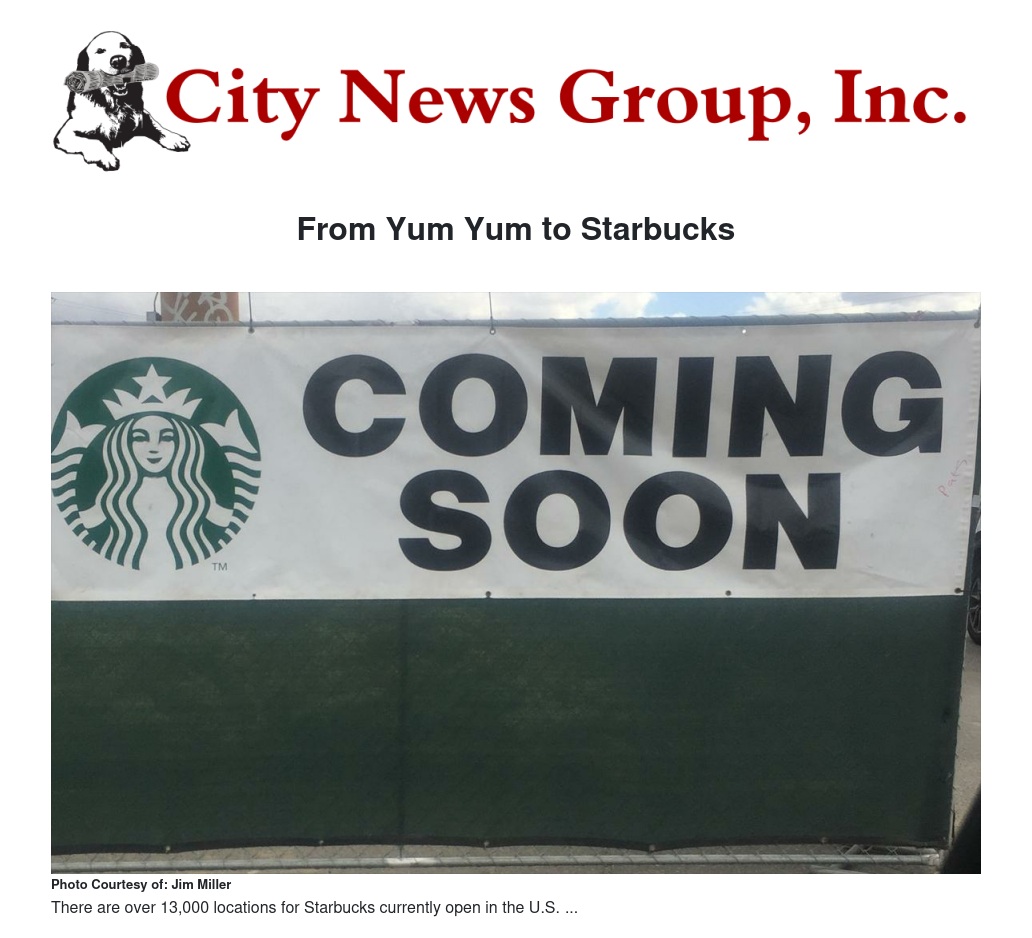 From Yum Yum to Starbucks by Hattie Strong - City News Group, Inc.