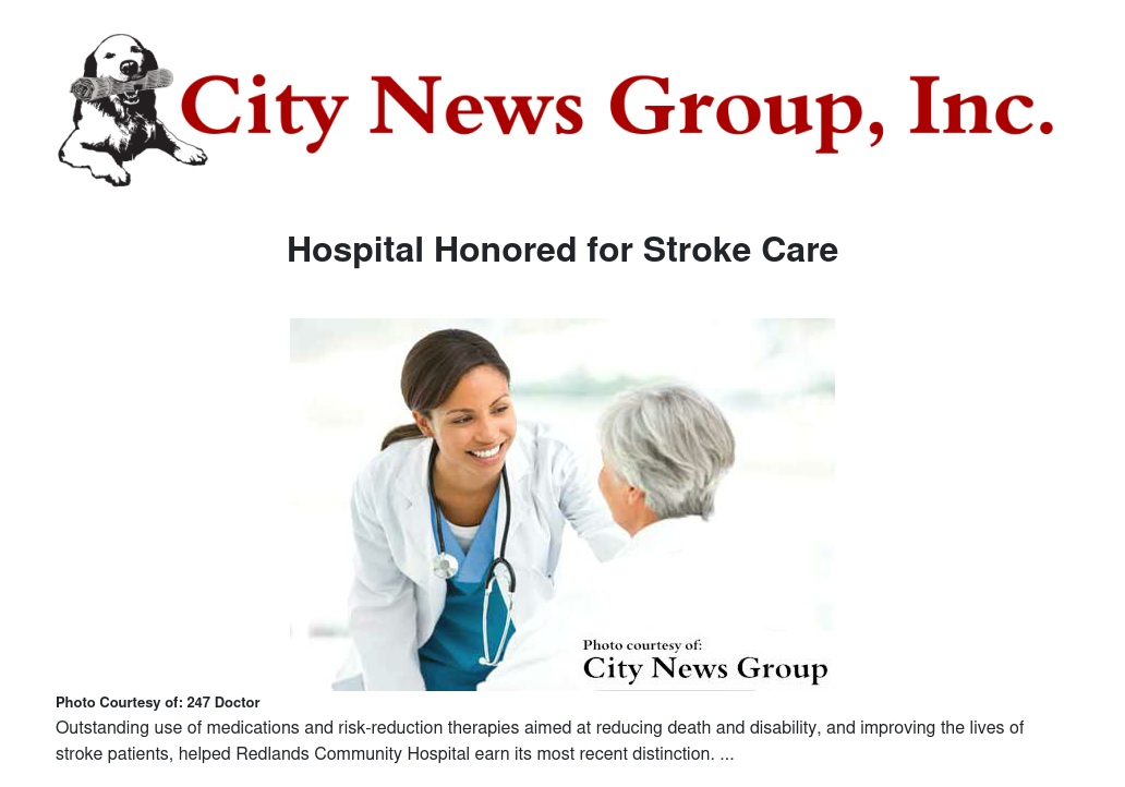 “Redlands Community Hospital is dedicated to improving the quality of stroke care and the American Heart Association/American Stroke Association’s Get With The Guidelines–Stroke helps us achieve that goal,” said Lauren Spilsbury, M.S.N., R.N., vice president of nursing at Redlands Community Hospital. “Our hospital demonstrates a commitment to ensure that our patients receive care based on internationally-respected clinical guidelines.”