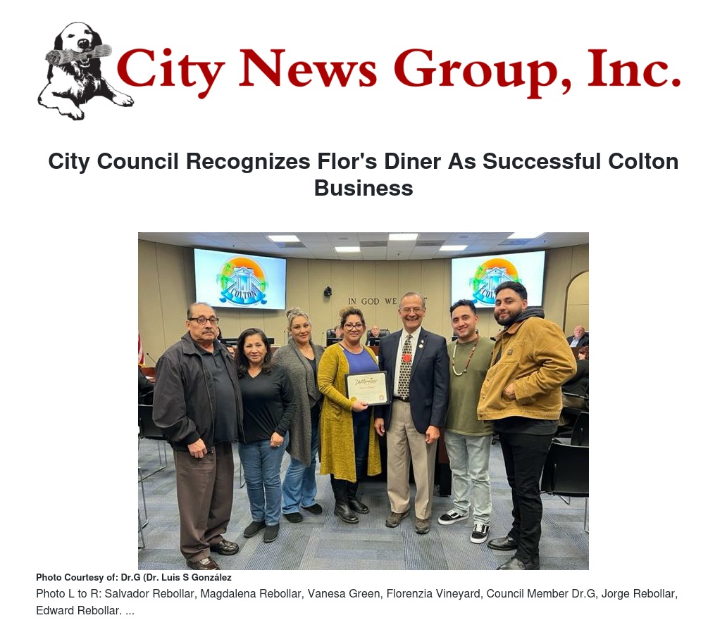 City Council Recognizes Flor's Diner As Successful Colton Business by City of Redlands - City News Group, Inc.