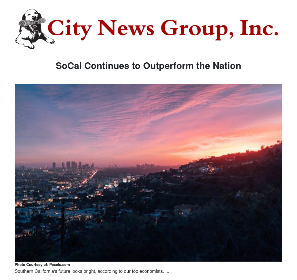 SoCal Continues to Outperform the Nation by Steve Lambert - City News Group, Inc.