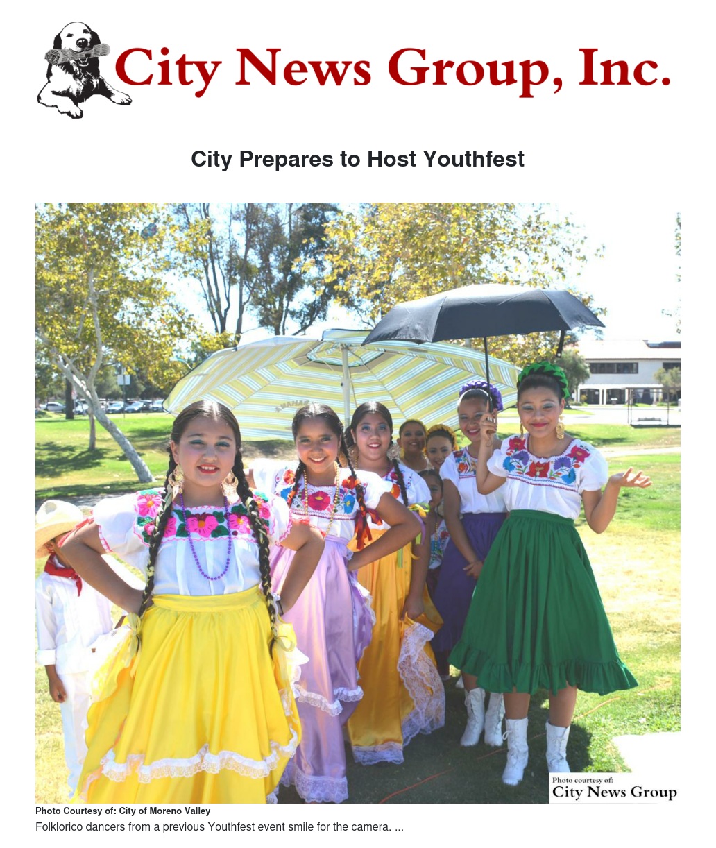 The Moreno Valley Parks and Community Services Department will host YouthFest on Sept. 12 from 10 a.m. to 2 p.m. at Community Park, located at 13380 Frederick Street.