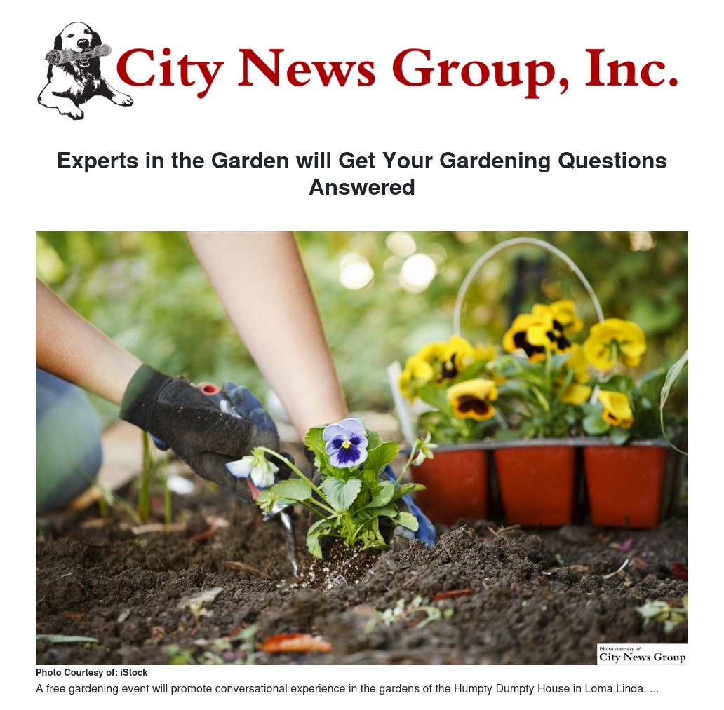 The University of California Cooperative Extension (UCCE) San Bernardino County Master Gardener Program is coordinating a free gardening event that will feature gardening experts on Sunday, June 28 from 1 to 4 p.m. at the Humpty Dumpty House in Loma Linda.