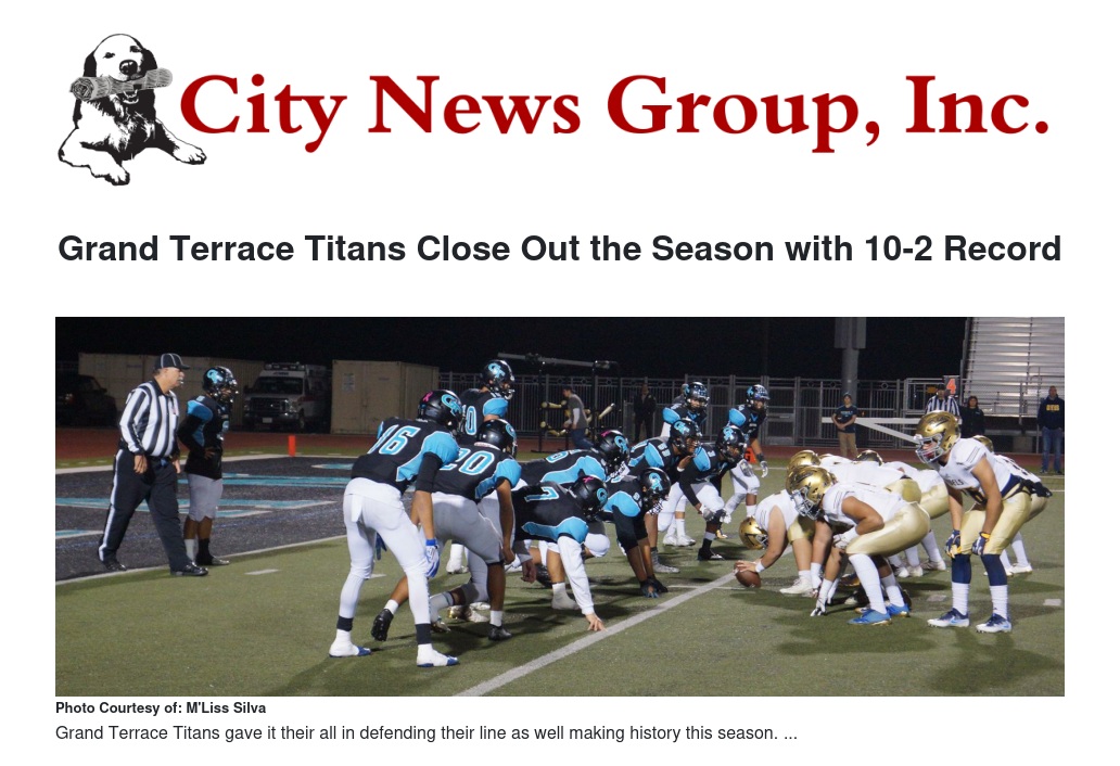 Grand Terrace Titans Close Out the Season with 10-2 Record by M'Liss Silva - City News Group, Inc.