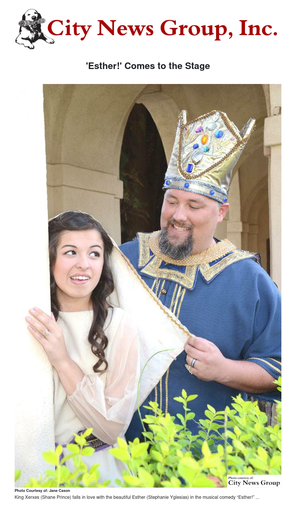 Playing the title role of Esther is Stephanie Yglesias. Shane Prince portrays the inept King Xerxes. Michael Tennant is featured in the role of the sly and conniving Haman. The musical also features William Fernandez Sr. as Mordecai, Jordan Crother as Teresh and Sarah Pearce as Queen Vashti. The Storyteller narrating the amazing events is played by Emily Prince.