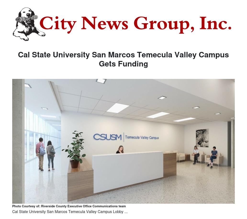 The Riverside County Board of Supervisors slated $5.5 million in American Rescue Plan Act (ARPA) funding, for the advancement of higher education programs at California State University San Marcos (CSUSM) Temecula Valley Campus. Led by Third District Supervisor Chuck Washington, this funding will support programs that foster educational attainment and economic stability in Southwest Riverside County – benefiting residents today and well into the future.