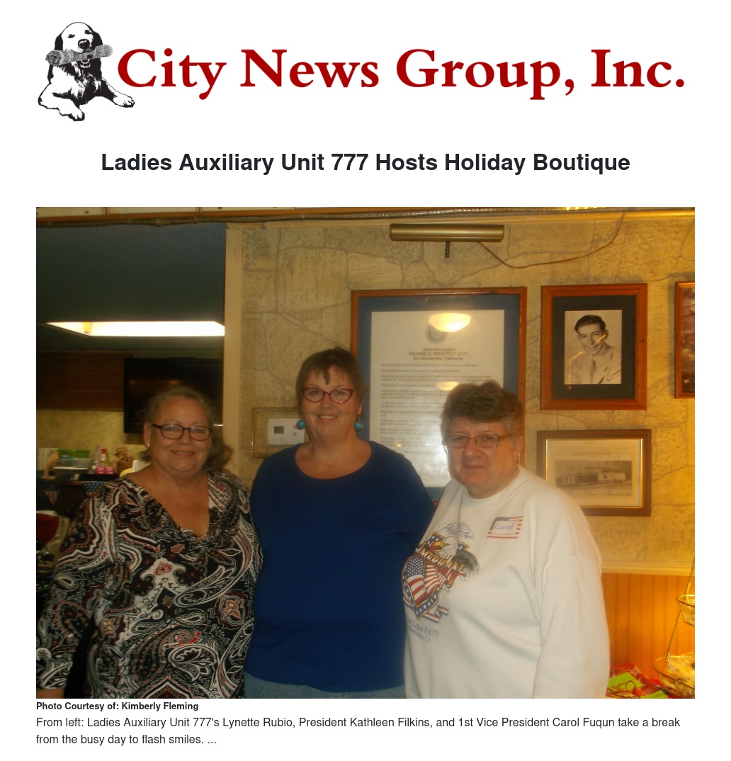 The Ladies Auxiliary Unit 777 held their Annual Holiday Boutique just before the holiday shopping season kicked off late last month.