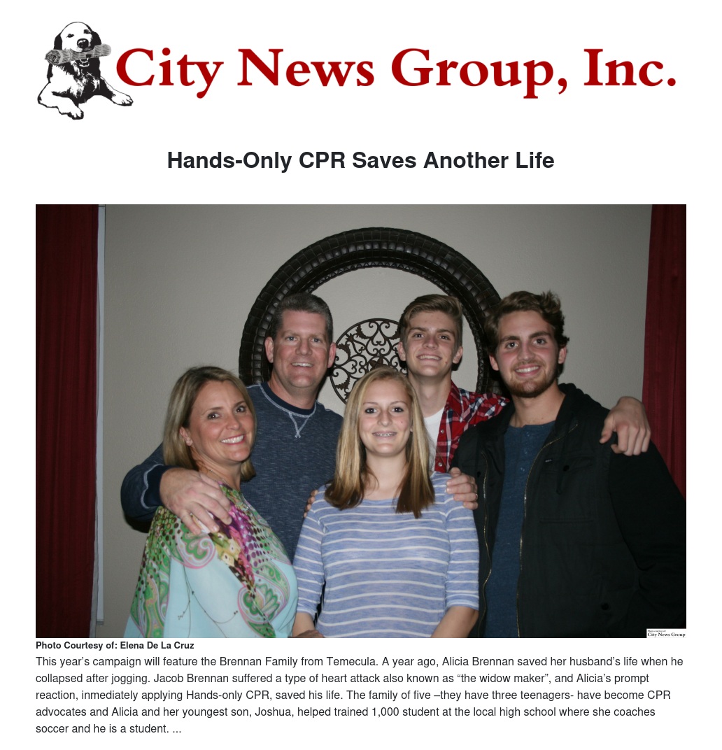 The Brennan’s story will be on display at 168 Stater Bros. supermarkets, where customers can make donations and dedicate a paper heart in honor or memory of a loved one. Funds raised through the “Have A Heart, Save A Heart” campaign will be invested locally to teach hands-only CPR to Inland Empire residents, involve students in fitness programs like “Jump Rope For Heart” or “Hoops For Heart”, and implement educational programs in multi-cultural communities.