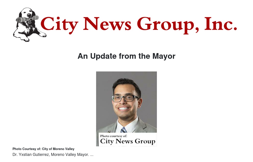 MORENO VALLEY>> Although summer is typically light on news, I do have a few things to share with you.