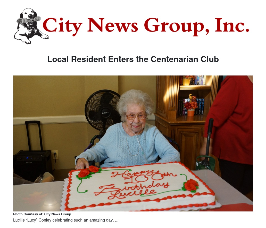 Lucille “Lucy” Conley is a California native who grew up in San Bernardino, and who has also gained the privilege of becoming the newest member in a exclusive club, the Centenarian Club.